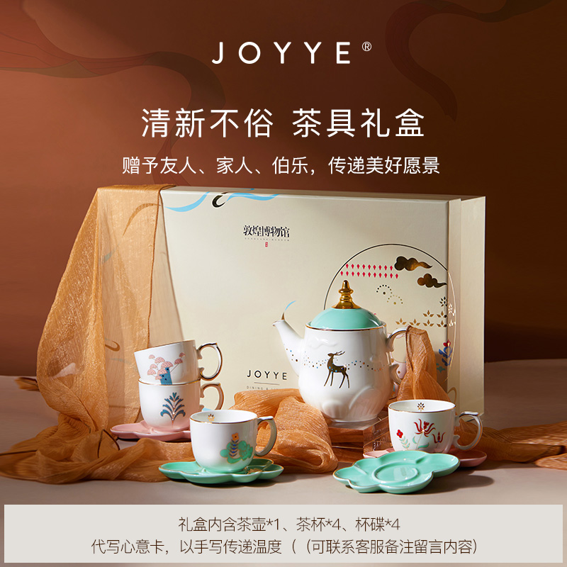 2.清新不俗 茶具礼盒,用 [ 心鹿 ] 茶具,细品一盏茶,润喉养身,艺术养心。送予心系之人,重拾清心本真,自在无拘束,每份礼盒内含:心鹿茶壶 *1、心鹿茶杯 *4、杯碟 *4,满足 1-4 人茶聚需求