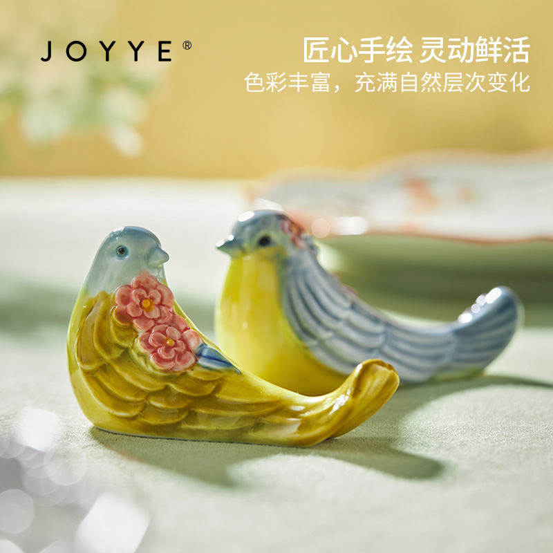 1. 以珍稀的花、鸟为创作灵感,融合浮雕和釉下手绘工艺进行设计制作