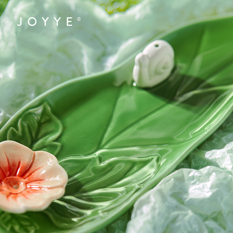 1.叶型插香底座,以花朵、蜗牛元素装饰。蜗牛有“ 一步一步往上爬”之意,鼓舞追梦